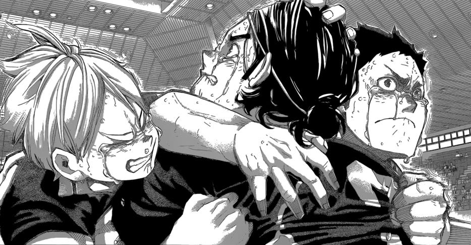 I think Oikawa’s motives and internal thoughts would be an incredible aspect to spend more time on in the anime and manga. It is evident he is excruciatingly hard on himself and watching Kageyama (who he trained in middle school) do better than him and go further than him clearly hurts. Oikawa doesn't have natural talent, he puts in countless hours to be at the level he is and still is not where he dreams of being.